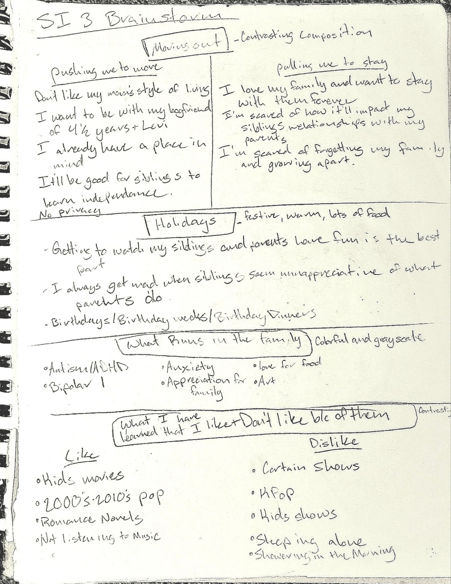 Page 1: I explored my feelings on certain topics, like moving out of my parents house and what holidays/traditions we have in my family.